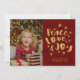 Peace Love Joy Holiday Photo Red Gold Navidades Card