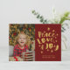 Festiva Peace Love Joy Photo Red Gold Tarjeta de Navidades
