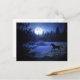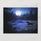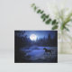 Una postal divertida con un caballo corriendo en la nieve y la luz de la luna. Una forma divertida de enviar saludos de vacaciones