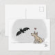 Esta tarjeta postal es muy linda para Halloween o en cualquier momento. El ilustracion muestra a un perro enamorándose de un murciélago. Arte creado por Tracy Lopez.