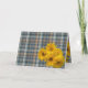 Única, elegante, de moda, bonito y decorativa tarjeta de fiesta de Acción de Gracias. Cute CON AMOR DE texto y habitación a personalizar o personaliza con una foto y nombres (o apellido) de tu elección. Con adorables Mamáes cálidas de otoño amarillo cálido, las calabazas florales sobre una verde azulada casa de campo rústica de color azul, mostaza ocre, marrón y gris, inspirado en el diseño de fondo de lona de lona trenzada. Y un poema de bienvenida de temporada de personalizable en el interior de la tarjeta.