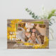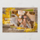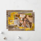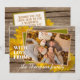 Única, elegante, de moda, bonito y decorativa tarjeta de fiesta de Acción de Gracias. Cute CON AMOR DE texto y habitación a personalizar o personaliza con una foto y nombres (o apellido) de tu elección. Con adorables Mamáes cálidas de otoño amarillas cálidas, las calabazas florales en una casa de campo rústica de aspecto gris y aspecto templado inspirado en el diseño de fondo de tablas de madera de pino. Y un poema de bienvenida de temporada de personalizable en el reverso de la tarjeta.