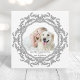 Tarjeta fotográfica de texto personalizado con marco ornamental gris. Para una personalización más avanzada de este diseño, pulse el botón "Personalizar".