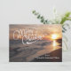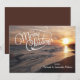 Deseos cálidos desde la playa. En una escritura blanca se dice, "Feliz Navidad". Hay un hermoso cielo con puesta de sol. Las olas del océano se estrellan a lo largo de la arena. El resplandor de la puesta de sol en la esquina. Echa un vistazo a las muchas otras escenas y productos de la playa que tenemos en nuestra tienda.