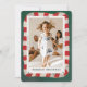 Playas rayas de caña de caramelo bordean la foto de tus Navidades favoritos en esta cédula de vacaciones. Colores clásicos de Navidades rojos y verdes. Personalizar todo el texto con tu saludo de vacaciones.
