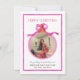 Anda en las vacaciones con un Pop de Fuschia Pink Bow Coquette Tarjeta de Fotografía de Navidad Abrace la magia de los Navidades con nuestra encantadora Tarjeta de Fotografía! Coloca una foto en el frente y tiene rayas en la parte posterior. Esta carta es una deliciosa mezcla de encanto clásico de las vacaciones y tonos rosados juguetones, perfecto para capturar la dulzura de la temporada.