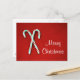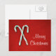 Cañones de caramelo rojo, verde y blanco fotografiados en un fondo rojo festivo. Texto blanco de "Feliz Navidad" colocado al lado de los dulces. El texto puede cambiarse o eliminarse para adaptarlo a sus necesidades.