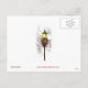 Un boceto blanco y negro de un pueblo victoriano con el único color de la lámpara de la calle y de la decoración navideña. Reimpreso en esta postal.