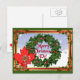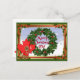 Saludos festivos de Canadá y Canadá. El bonito dorado y el borde rojo tienen esquinas de desplazamiento holly. Fondo cubierto de nieve con flor de flores y bandera de castor canadiense ondeando frente al mapleleaf rojo. El texto dice: ¡Feliz Navidad Eh! Personalizar dentro de las áreas de saludo, mensaje y cierre.