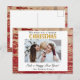 Esta tarjeta de Navidades fotográficos personalizados presenta un fondo rústico de madera de grano rojo templado, ideal para los que aman una casa de campo o una estética de estilo rústico. La foto personal de la familia se centra en la tarjeta, destacando en contra de la rica textura de madera roja, que evoca un cálido y acogedor calor vacacional. Encima de la foto, se escribe "Te deseamos una Feliz Navidad", con "NAVIDADES" resaltados en letras de oro brillantes impresas que salen maravillosamente contra el fondo rústico. Debajo de la imagen, un guión escrito a mano desea "¡Y un feliz año nuevo!" seguido del nombre de la familia del personalizable, como "La familia Hopkins". El contraste entre la vibrante madera roja y los acentos dorados hace que la carta se sienta festiva y encantadora, ideal para quien quiera añadir un toque rústico y elegante a sus saludos de vacaciones. Este diseño es perfecto para enviar correos a sus seres queridos o para mostrarlo durante las vacaciones.