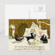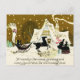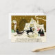 Hermosas siluetas de personas con trineos conducidos por caballos y una pareja caminando llegan a una casa cubierta de nieve en el país. Saludo: Un saludo amistoso de los Navidades y todos los deseos para el próximo año. **Imagen de una tarjeta de Navidades victorianos.