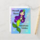 Tarjeta postal de Navidades con la temática de la sirena. Front dice Besos de Sirena y Deseos de Navidades y el trasero de la tarjeta postal dice 'Este es el Mar-Sol