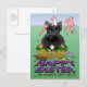 La postal de Pascua dice "Feliz Pascua... o lo que queda de ella". Con una escocesa traviesa con orejas de conejito, sentado en una canasta de Pascua rodeado por su conejita de pascua de chocolate y sus huevos de pascua. El conejito de Pascua, sin sus orejas y cola, está huyendo por su vida.