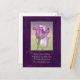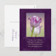 Un simple poema de Song of Spring Easter complementa una hermosa fotografía de tulipanes rosados de cinta en el frente, con un oscuro fondo violeta floreciente. Personalizar/Personaliza tu nombre en la parte posterior. Fotografía original, poema y diseño de Sue Nollmeyer ©2012.
