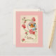 Esta postal rosa de Pascua tiene una imagen vintage de una niña que sale de un huevo de Pascua.