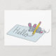 Un pequeño y querido ratón agarra un gran lápiz amarillo para escribir este saludo de postal "hola", con un sello cardíaco. Esta es una postal especialmente dulce para enviar a los niños, pero puede ser enviada a cualquiera que aprecie los adorables animales y los adorables ilustraciones. Arte creado por Tracy Lopez.