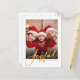 Esta es una postal minimalista y moderna de vacaciones usando una foto simple y de moda con "Joyful" en un elegante y clásico guión manuscrito dorado. Cambie fácilmente la foto del frente y elimine el nombre de la familia o de la empresa utilizando las opciones de plantilla proporcionadas y agregue un mensaje al reverso. Póngase en contacto con el diseñador para cualquier pregunta o problema relacionado con este diseño o para cualquier producto que coincida.