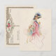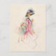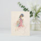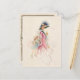 Hermosa madre victoriana con vestido azul y sombrero emplumado sonriendo a su hija mientras pasean. Este encantador estudio está pintado en estilo acuarela pastel. La parte trasera cuenta con mensaje editable, campos de texto y gráfico floral opcional con fondo complementario personalizado.