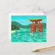 Una postal de bonito con el famoso santuario de Itsukushima. El santuario de Itsukushima es declarado Patrimonio de la Humanidad por la UNESCO.