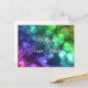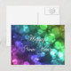 Esta tarjeta es perfecta para desear a sus amigos y familiares un feliz año nuevo! El fondo es de estilo bokeh con un degradado de rosa, violeta, azul, verde y amarillo. Sobre el fondo están las palabras "Feliz Año Nuevo" en un texto escrito.
