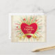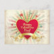 Feliz postal de San Valentín con corazón rojo vintage, franja dorada y rayas.