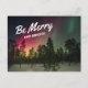 La postal de la foto se puede modificar para requisitos particulares con su propia imagen y texto, o el uso como está para una tarjeta moderna de la naturaleza con un mensaje simple. Perfeccione para los entusiastas al aire libre y los amantes de naturaleza, la aurora boreal crean un contexto mágico para un paisaje clásico del árbol de hoja perenne del invierno.
