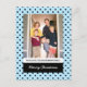 Sencilla pero encantadora tarjeta postal de fotos de Dulce Polka Dots Holiday con un divertido patrón de puntos polka con puntos negros y un fondo azul claro. Esta tarjeta fotográfica extraordinariamente moderna se puede personalizar fácilmente con una foto y un saludo personalizado de Navidades. Para obtener más opciones de personalización, haga clic en Personalizar. Fotografía © Storytree Studios, Stanford, CA