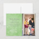 Postal fotográfica fantástica pero simple copo de nieve Swirls Holiday con una variedad de ráfagas de viento y copos de nieve sobre un fondo de color verde acuático. Esta elegante postal es fácil de personalizar con una foto y el saludo personalizado de sus Navidades. Haga clic en "personalizar" para buscar opciones de personalización adicionales. Fotografía © Storytree Studios, Stanford, CA