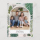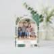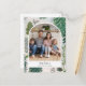 Tarjeta fotográfica de vacaciones pintada a mano con un saludo personalizado a lo largo de un ilustracion forestal de invierno.