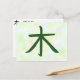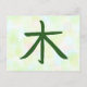 Una hermosa postal con el kanji para el árbol. El significado del kanji está en la parte posterior de la postal.