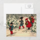 Diseñado por Susan Epps Oliver. Imagen vintage de cuatro niños esquiando en un paisaje nevado.