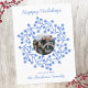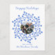 Añada su propia foto a este moderno diseño de festividades escandinavas azules y blancas. Hace un lindo amor familiar. Cambie el saludo y el nombre para personalizar. Crédito de la foto: Photography © Storytree Studios, Stanford, CA