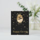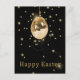 Glamoroso ilustracion fiesta de Pascua con una bola de disco colgante en forma de huevo de Pascua con brillantes lentejuelas doradas sobre un fondo negro.