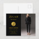 Un hermoso diseño que incorpora 1 de sus propias fotos y el logotipo de su negocio. Esta elegante tarjeta postal de fotos en blanco y negro y dorado es ideal para todo tipo de profesiones. Una forma sencilla y profesional de promocionar su negocio. Un postal empresa perfecto para agentes inmobiliarios, organizadores de eventos, consultores, etc. Personaliza tus detalles para crear tu propio diseño único.