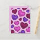 Postal vertical con corazones 3D rojo brillante, rosa y púrpura