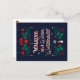Una elegante y moderna postal navideña vintage presenta un fondo nevado, copos de nieve, campanas de trineo, snowman (hombres de nieve), letras ornamentales y floridas, y un tema de guirnaldas botánicas de mistletoe para representar lo mejor de las vacaciones. Está inspirado en las canciones Navidades de Navidades del pasado de la letra "Walking in a Winter Wonderland" y también es una gran manera de expresar el Bienvenida Vacacional para los que les importe. Creado con letras y ilustraciones diseñados para aquellos que solo aman los estilos únicos y de Novedad! Diseñado por Katrina Sutton.