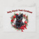 La tarjeta linda de la primera Navidad de Baby Niece con un brillante fondo blanco metalizado, copos de nieve cayendo y un gatito de bebé sentado en medio de una corona de Navidades. El reverso tiene un lindo verso apropiado para la ocasión.