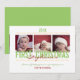 Tres dulces y pequeñas fotos de tu bebé aparecen en esta sencilla y alegre tarjeta de vacaciones que permite a la familia y amigos saber que es tu paquete de navidad de alegría. En oro festivo, rojo y marrón chocolate. Otros colores disponibles: