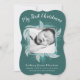 Quiere celebrar a los Navidades anunciando que sus pequeños llegan a su familia y amigos. Esta es la manera de hacerlo. Añada la foto de su bebé a este diseño dulce y moderno usando una corona de festividad botánica verde suave pintada a mano detrás de la foto junto con las palabras "Mi primera Navidad" en la parte superior y el nombre del niño, información de nacimiento y los nombres de sus padres en la parte inferior. Todo esto sobre un fondo de verde verde azulado. El dorso de la tarjeta es el mismo tono de verde con un patrón de masa de abeto dulce en verde pálido. Este producto es totalmente personalizable, lo que significa que agrega tu propia foto y texto; y puede cambiar los colores de fondo, fuentes y colores de fuente, y forma de tarjeta, si lo desea. Si tiene alguna pregunta sobre el diseño o desea ver este diseño en otro producto, por favor, no dude en ponerse en contacto conmigo en jschmidtdesignworks@gmail.com. Diseño © Judith Schmidt.