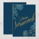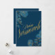 Hermosa tarjeta azul floral y dorada Purim Sameach para mishloach manot.