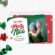 Querido Santa, este año hemos sido amables en su mayoría. Cheeky tarjeta fotográfica de vacaciones para mostrar a tus hijos o mascotas, en su mayoría bonitos. Tipografía retro divertida y colores verdes y rojos clásicos. Foto personalizar, saludo, nombre y área de año.