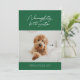 Envía alegría de vacaciones adorables con esta divertida tarjeta de foto. Con las palabras "travieso pero lindo" en un guión moderno, este diseño de tarjetas de Navidad es perfecto para niños, bebés, mascotas y más. Cuenta con un fondo verde festivo, una foto horizontal y un texto personalizado en la parte inferior. La parte de atrás es un verde festivo a juego con especkles blancos.