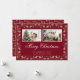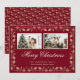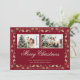Elegante foto roja y dorada Feliz Navidad con una carpa dorada sobre un fondo rojo oscuro. Personaliza fácilmente esta tarjeta de Navidades de fotos con tus fotos favoritas y el nombre de la familia.