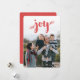 Un simple mensaje de alegría adorna tu tarjeta de foto de vacaciones. Este diseño incluye una foto de sangre completa y un saludo festivo y deslumbrante en la parte delantera de la tarjeta. El motor presenta un sutil patrón de nieve y espacio para agregar un mensaje personal o fotos adicionales.