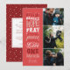 Esta tarjeta de foto religiosa de Navidad muestra un mensaje tipográfico perfecto para una tarjeta de festividad cristiana. Regocijémonos todos con esperanza, recemos por la paz y amémonos unos a otros - sentimientos perfectos en la época del Navidad o a lo largo del año. Personalizar todos los colores para que coincidan con las tres fotos de la familia, y agrega un mensaje personal al reverso.