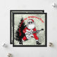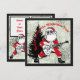 Rockin alrededor de la tarjeta plana de árbol de Navidad. Santa Jugando Una Tarjeta de Navidades de guitarra con fondo negro y plateado. Foto y texto editable. Cuero negro y plateado metálico. Tarjeta de navidad rock and Roll.