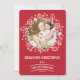 Vintage temático con los elementos a mano, estos navidad precioso que saluda las características acebo caprichoso, conos del pino, copos de nieve y foto la su de familia de alrededor del invierno floral y con un estilo moderno simple de la tipografía para mostrar el saludo y la foto de su familia. Coordinación del modelo rojo y blanco de la raspa de arenque en la parte posterior. El esquema de color rojo blanco y rico del día de fiesta es perfecto para cualquier tema del invierno.