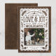 Personalizado económico imprimió tarjetas fotográficas de vacaciones con plantillas sencillas para la personalización. Este diseño neutro y caprichoso presenta un fondo de madera falsa, un corte de papel con elementos rústicos y una tipografía mixta. El texto dice "Que tu corazón esté lleno de amor y alegría de las fiestas". Personalízalo con tus fotos y texto. El fondo falso de madera forma parte del diseño impreso, las tarjetas no son de madera real. El reverso tiene espacio para el mensaje de sus Navidades personalizados o fotos adicionales. Utilice las herramientas de diseño para editar el texto, añadir más fotos y crear una única tarjeta fotográfica de vacaciones.