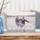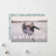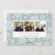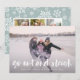 La tarjeta fotográfica festiva incluye tu foto horizontal o paisajística favorita en todo el sangrado, con "salir y dormir" sobre la tipografía de pincel con letras blancas. Personalice la parte delantera de la tarjeta con sus nombres y mensajes breves de vacaciones, y agregue tres fotos adicionales a la parte posterior en un diseño de collage en un fondo con motivos de copo de nieve verde claro, junto con un mensaje personal personalizado. Para una parte posterior en blanco, simplemente elimine las plantillas de fotos y la capa mate blanca.