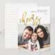 Envíe sus mejores deseos para el Año Nuevo con estas clásicas y bellas tarjetas fotográficas, que incluyen tipografía de escritura dorada en un diseño moderno en el frente, y un patrón oro de puntos suizos en la parte posterior.
